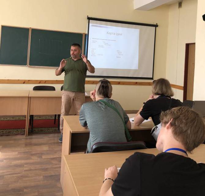 Про основи менеджменту, а також про те, як генерувати цікаві ідеї для власного бізнесу, з юнацтвом поспілкувався доцент кафедри економіки і підприємництва Роман Завадяк. На дітей очікували підготовлені ігри для брейнштормінгу та завдання для генерування нестандартних ідей. Учні дізналися про успіхи випускників економічного факультету, побачили живі приклади вдалого кар’єрного розвитку і навіть стали слухачами чудових віршів Романа Івановича.
